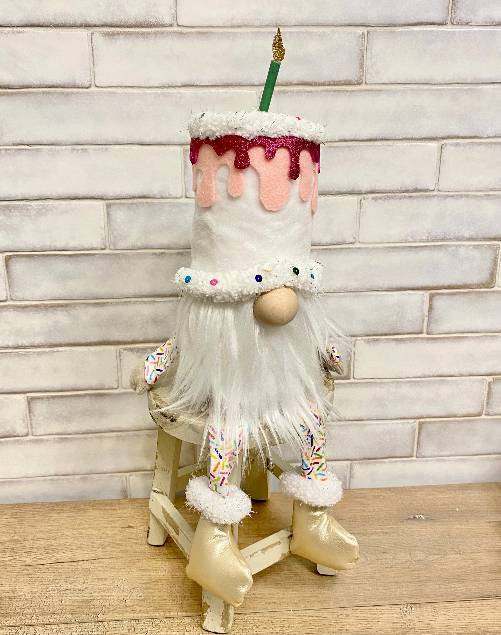 Celebrate birthdays with our fun birthday gnomes! Slight variations may occur (shoe color, or accents like frosting or candle color).