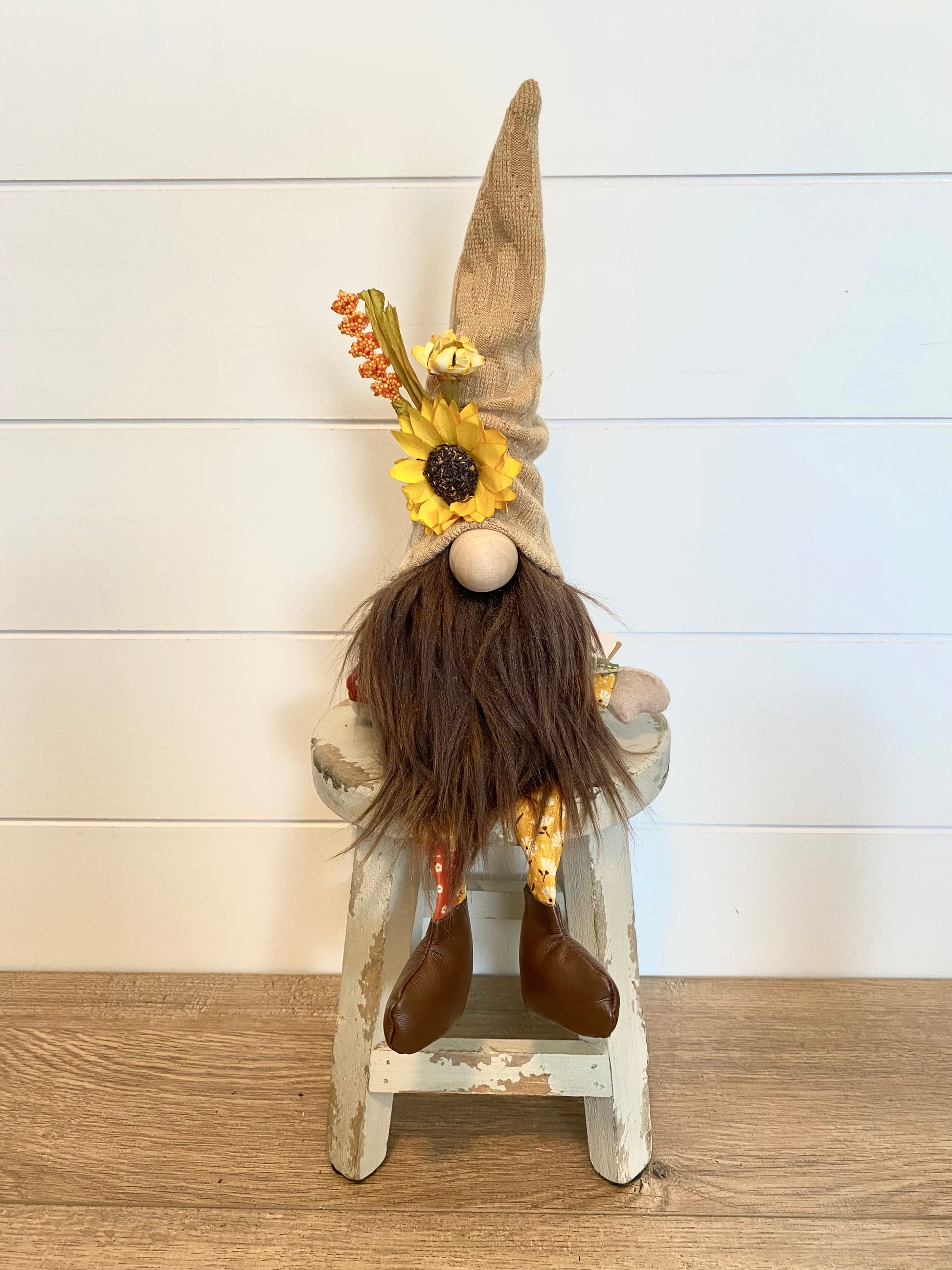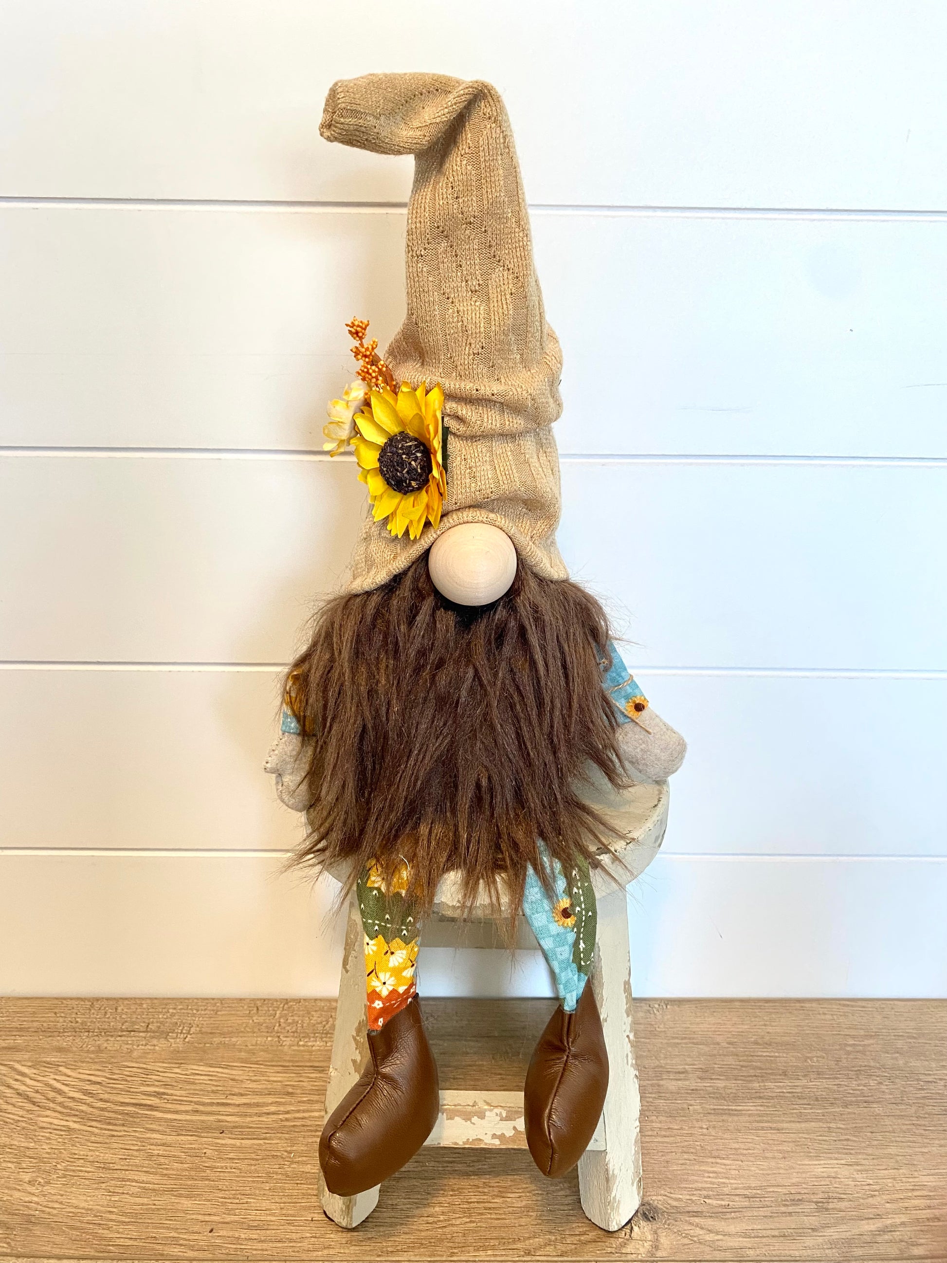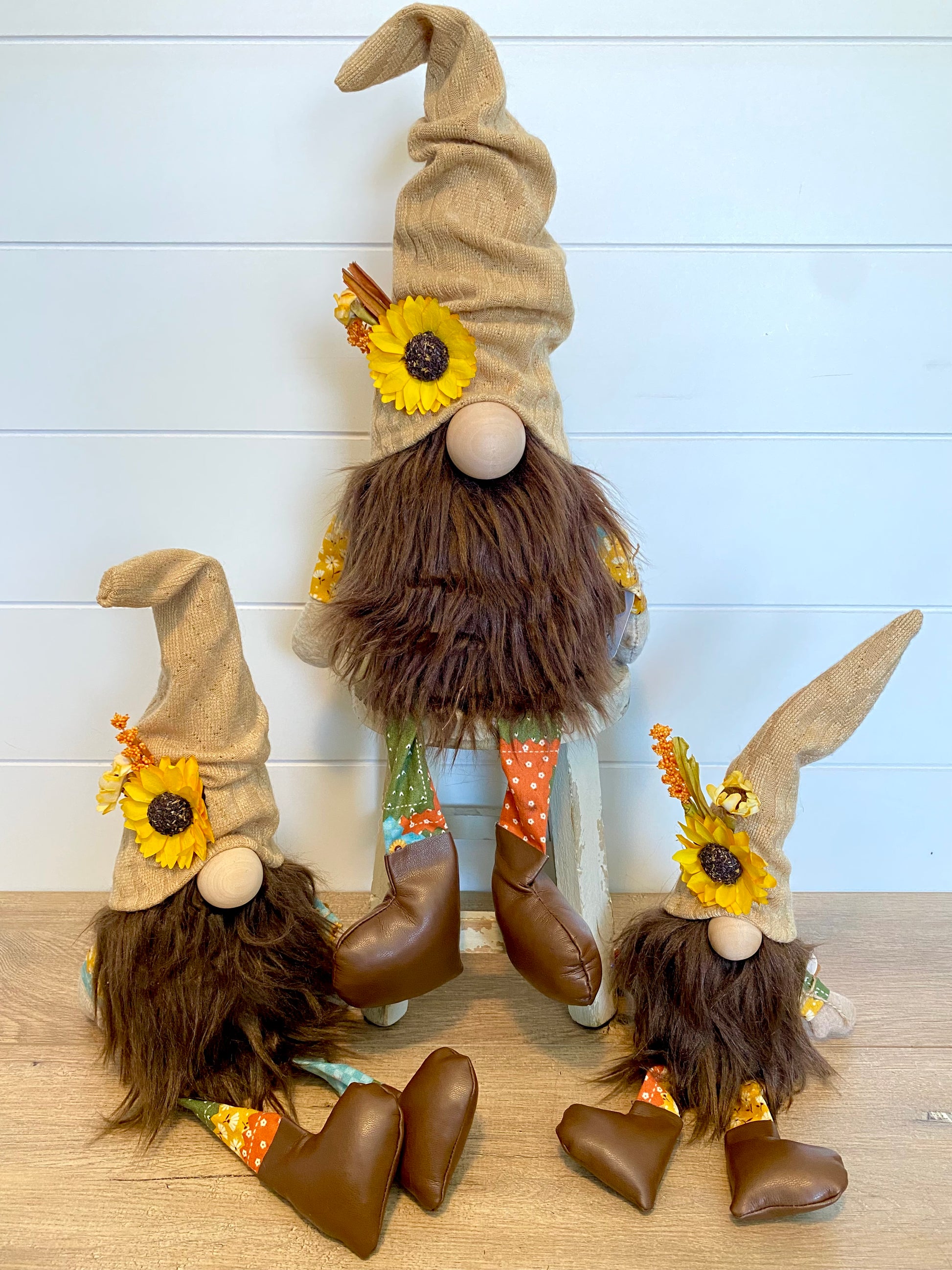 Sitting gnomes have a weighted bottom for a stable, seated position.