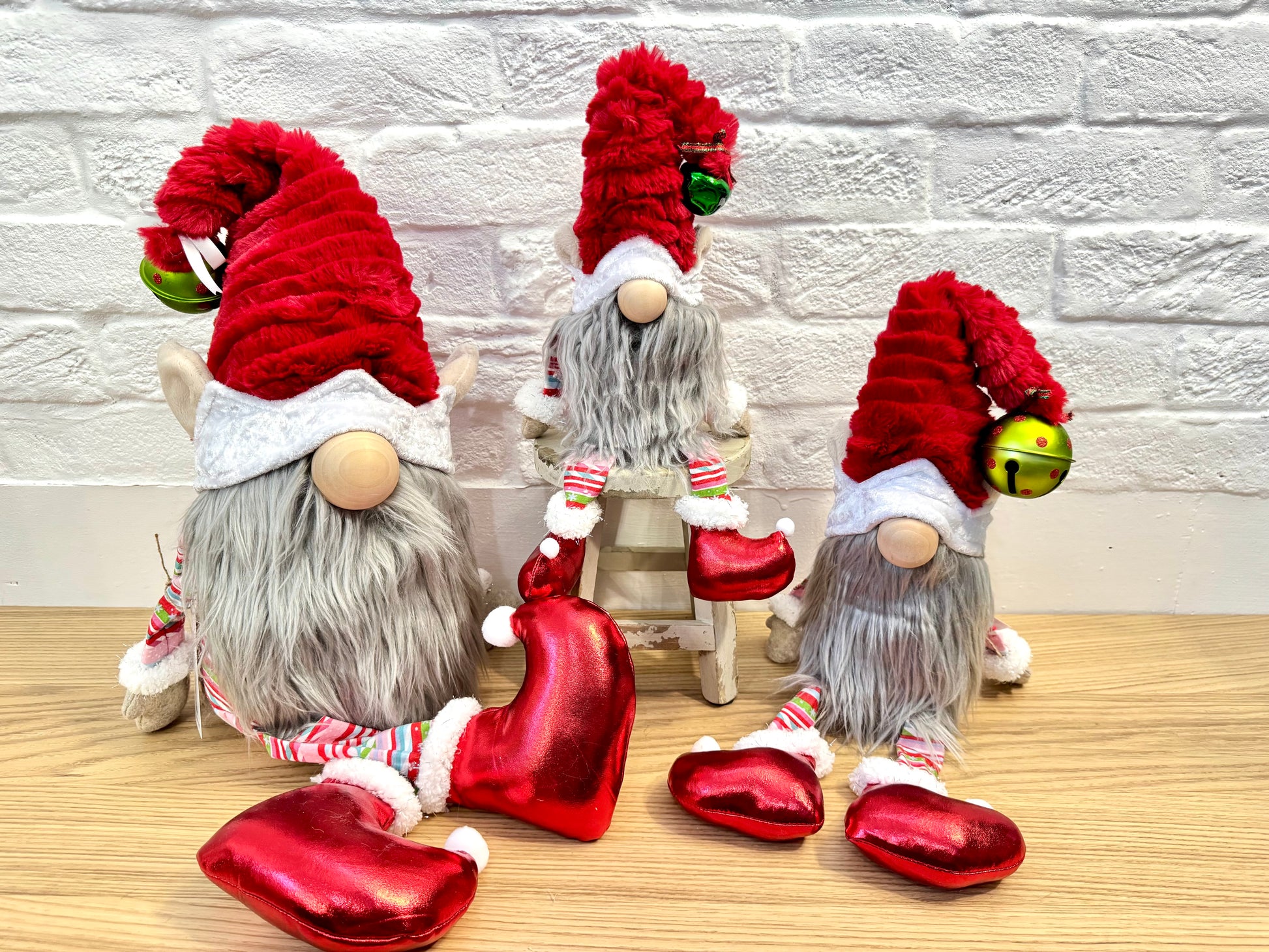 Sitting gnomes have a weighted bottom for a stable, seated position.